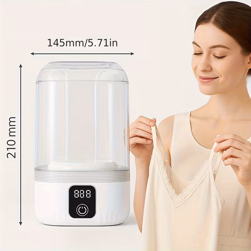 This is a portable, rechargeable mini washing machine designed for small items like underwear, socks, and baby clothes.